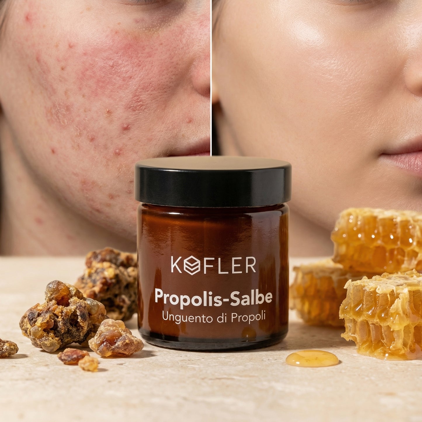 I prodotti a base di propoli si sono da tempo dimostrati utili per il trattamento di problemi alla pelle, sia negli adulti che nei bambini. La propoli da noi utilizzata è prodotta direttamente dalla nostra apicoltura Kofler Thomas di Laces in Val Venosta.