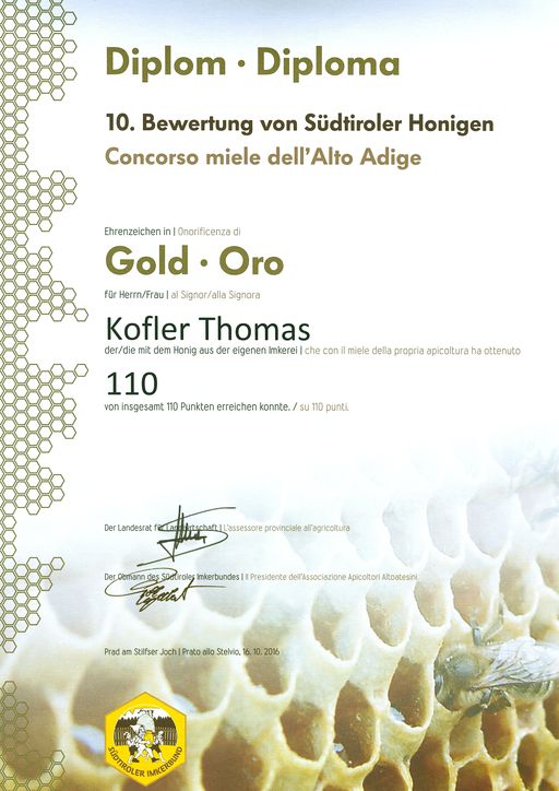 Wenn der Südtiroler Honig dann erntereif ist, wird er „abgeschleudert“, wobei der Reifegrad des Honigs besonders wichtig ist. Ein optimaler Reifegrad bedeutet, dass der Wassergehalt zwischen 15% und 18% liegt. Der Zeitpunkt für die Entnahme des Honigs und die weiteren Eingriffe durch den Imker müssen also wohlüberlegt sein. Ein Teil des Honigs wird den Völkern belassen, damit diese immer genügend Futter haben. Schon im Spätsommer entscheidet sich, ob die Bienenvölker gut überwintern.
